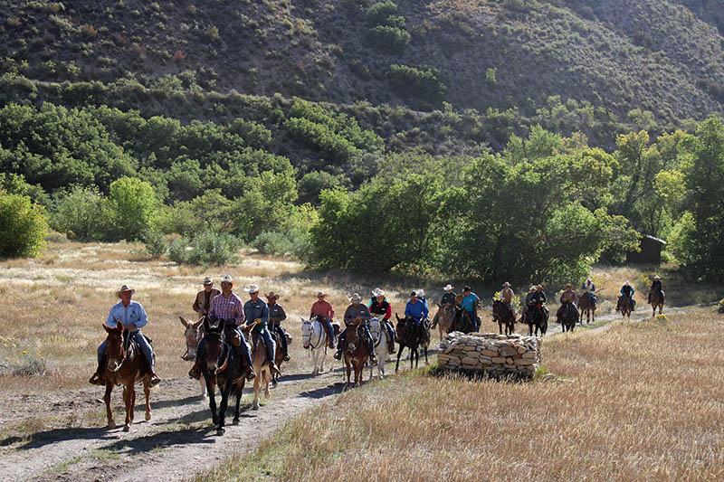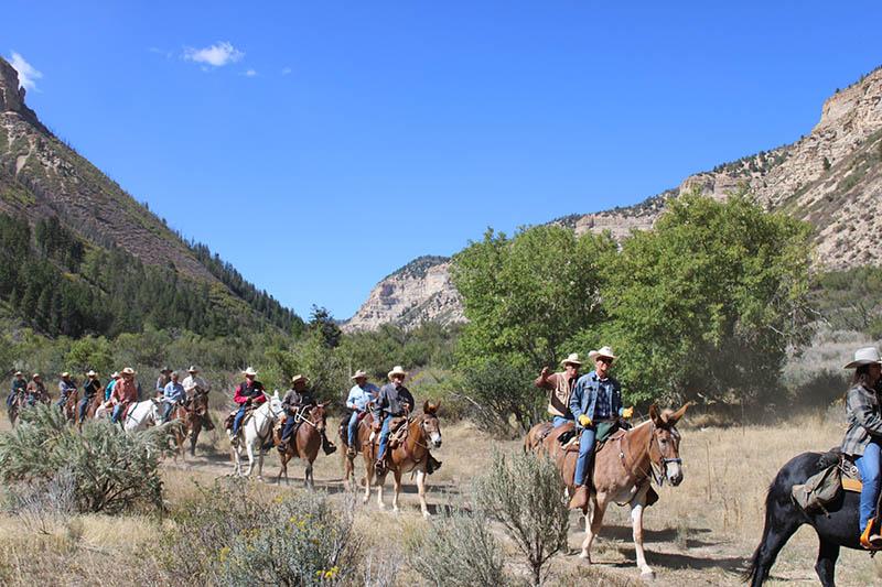 Each year we choose a different ranch approved by the Colorado Dude and Guest Ranch Assn. to host us for the five days as we ride. We ride the third week in September when the shimmering Aspens are at the peak of their fall foliage. The cost of the ride includes meals and lodging both for you and your mule, evening appetizers and cocktail hour. Our ride begins on Saturday in Colorado Springs with a “kick-off” event and ends the following Friday. We gather from all around the country with just as diverse backgrounds to spend this week together.